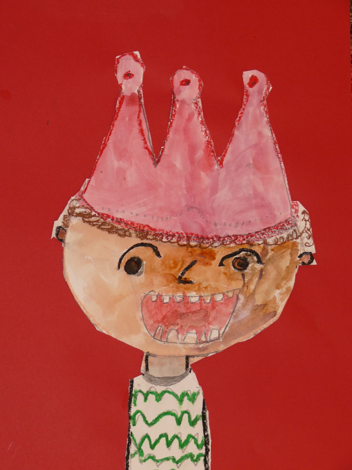 I AM excited to show off what we did finish up this week! Our ROYAL self portraits (Oil Pastel & Watercolor - we also worked on tracing, cutting and glueing!) are finally done and on display in the art room! K-2nd did amazing! Check them out!
